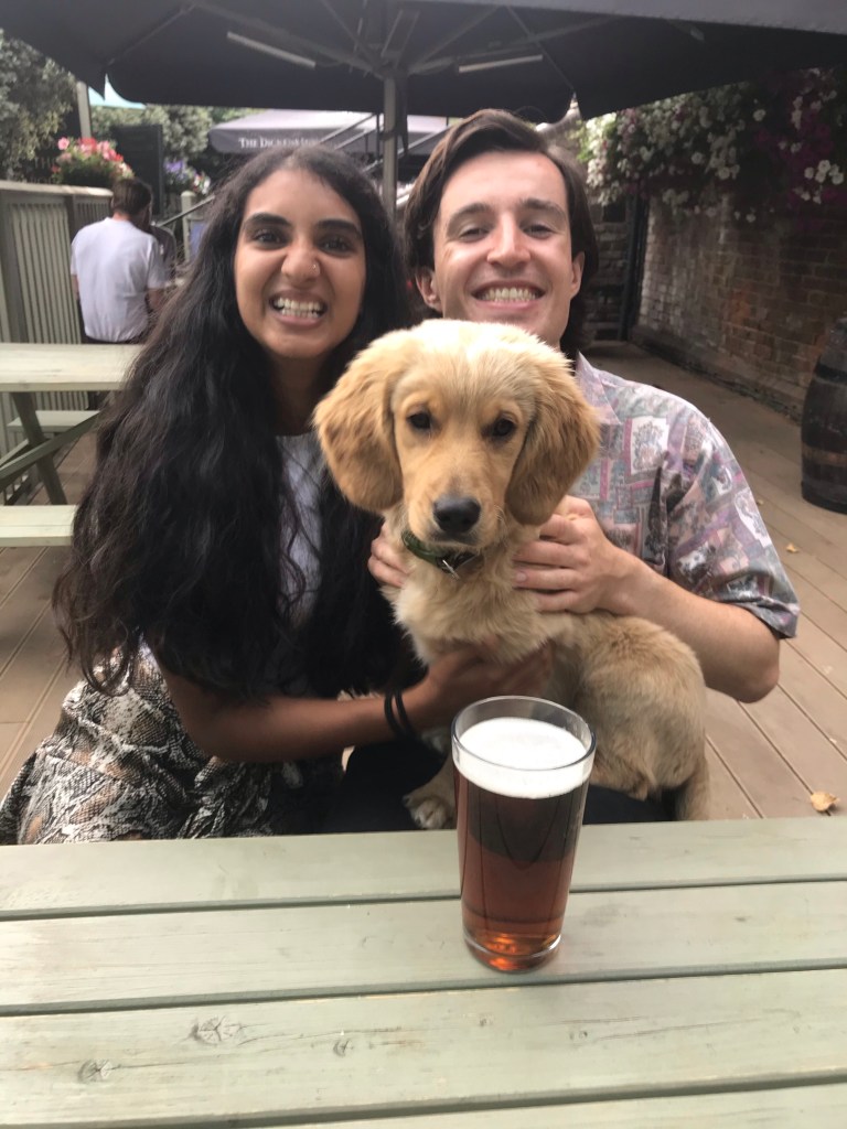 On Wednesday, I cycled into Barts to have my bloods checked prior to round 3 of chemotherapy. After that was done, Tom and I drove to visit his grandparents in Goring. Tom’s grandad, Andy, is recently out of hospital and we were so pleased to see that he is doing very well. It was a beautiful day to spend in their garden. Frank enjoyed having the freedom to explore, playing in their dog Flossy’s paddling pool and most of all, visiting the river garden where we went for our first family swim! Frank is now a certified level 3 water doggo!
