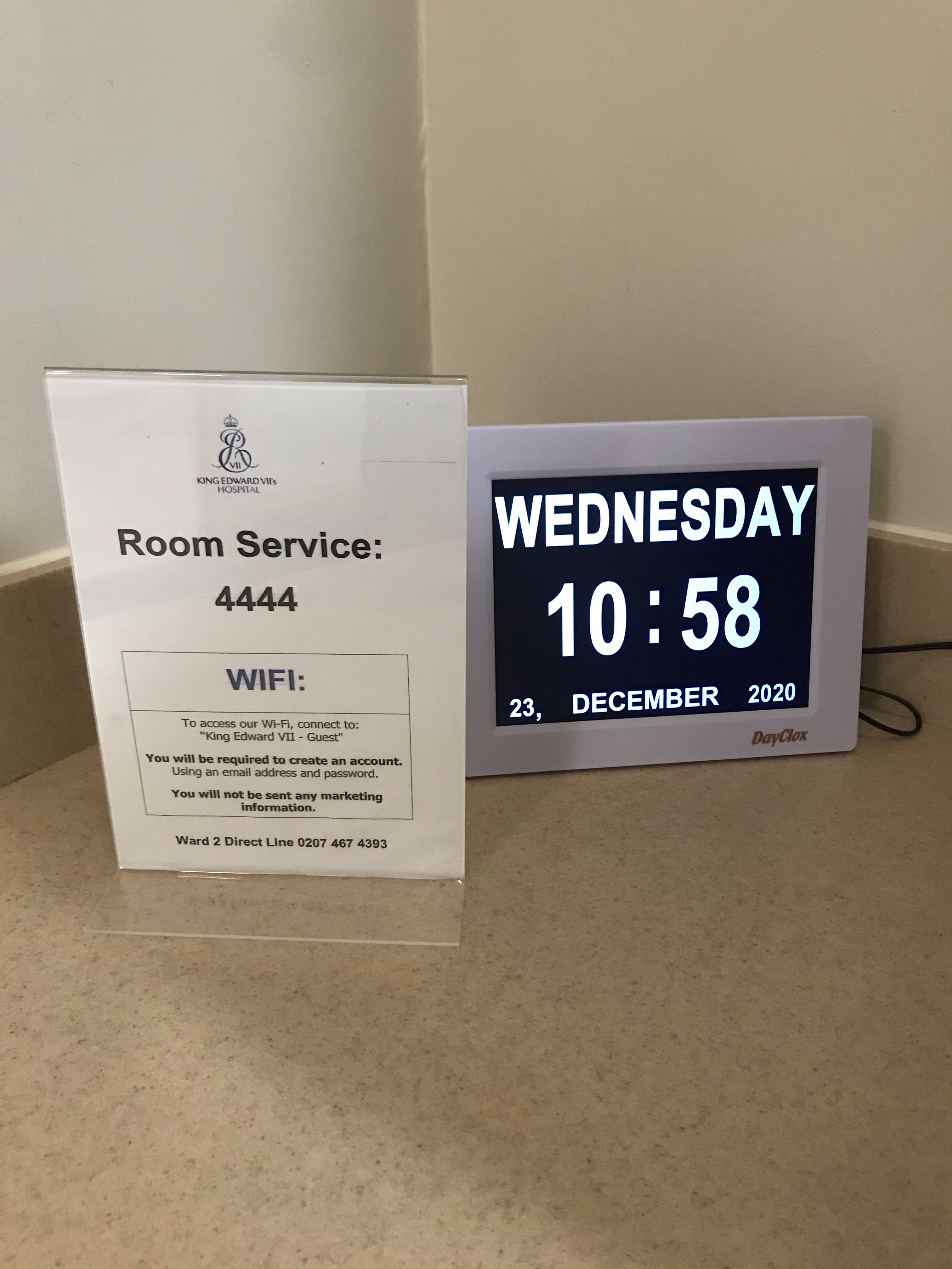I checked back in at the surgical ward briefly then they sent me to the King Edward VII hospital in Marylebone – apparently where the Royal Family frequent in times of illness! If only I hadn’t been going in for some major, probably life-saving surgery then I really would have enjoyed the following experience a lot more. A doorman in full suit and top hat welcomed me, then I was checked into my room where my coat was hung up in the wardrobe whilst I was told about the number for room service, how to order food for post-surgery and I looked at the toiletries that were better than I have at home.